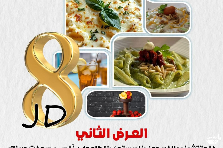 🎉 أطيب قعدة وأزكى أكلات مع صحبة بتجنّن ❤️ 💥 العرض الأول بـ 7 دنانير بس: (برغر / زنجر / شاورما / بيتزا) + شيشة + سوفت درينك. 💥 العرض الثاني بـ 8 دنانير بس: (فوتتشيني الفريدو / بنا بيستو / بنا كاجو) + شيشة + سوفت درينك 🥤 أجواء غير + أسعار بتكسر السوق 😊 👈 خلي صحابك جاهزين للقعدة! ______ 📍 موقعنا: شارع الأمير حسن (بالقرب من مجمع عمان الجديد – بجانب محمص كردش / تحت قاسيمة الفوال بـ ١٠٠م) ☎️ للحجز والاستفسار: 0778189911 #VIVAN #Restaurant #Cafe #Irbid #مطعم_فيفان VIVAN Cafe & Restaurant #Yarmouk #offers