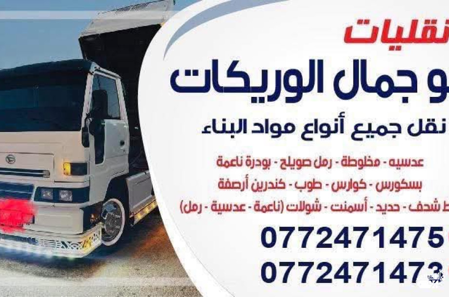 ✔️ طوب – رمل – صويلح – ناعمة – إسمنت – عدسية – سمسمية – بلاط – كوارس شحف بلاط ✔️ يتوفر تراب أحمر نخب 🌟 ✔️ خدمة إزالة طمم مع عمال أو بدون عمال جميع انواع المقولات ✔️ توصيل مباشر لباب بيتك داخل عمان وضواحيها 💰 أفضل الأسعار – سرعة في التوصيل – خدمة مضمونة 📞 للتواصل: 0772471473